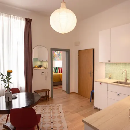 Una cocina bien equipada dispone de lavaplatos y un horno. El aeropuerto Praga Vaclav Havel está a 28 minutos en coche, y la parada de autobús Pernerova, no muy lejos de este apartamento.